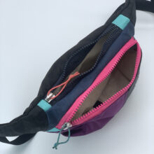 – Matières issues de l’économie circulaire, matières neuves made in Europe (sangle, zip, boucle)