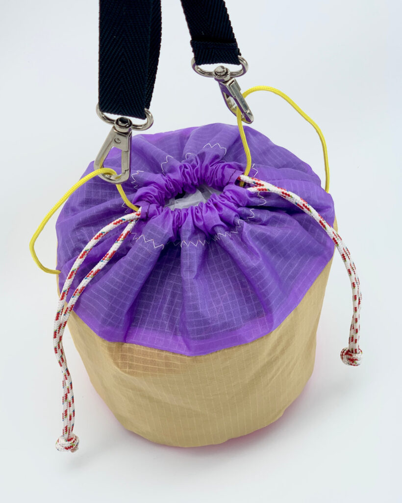 – Tissu principal : voile de parapente upcyclée